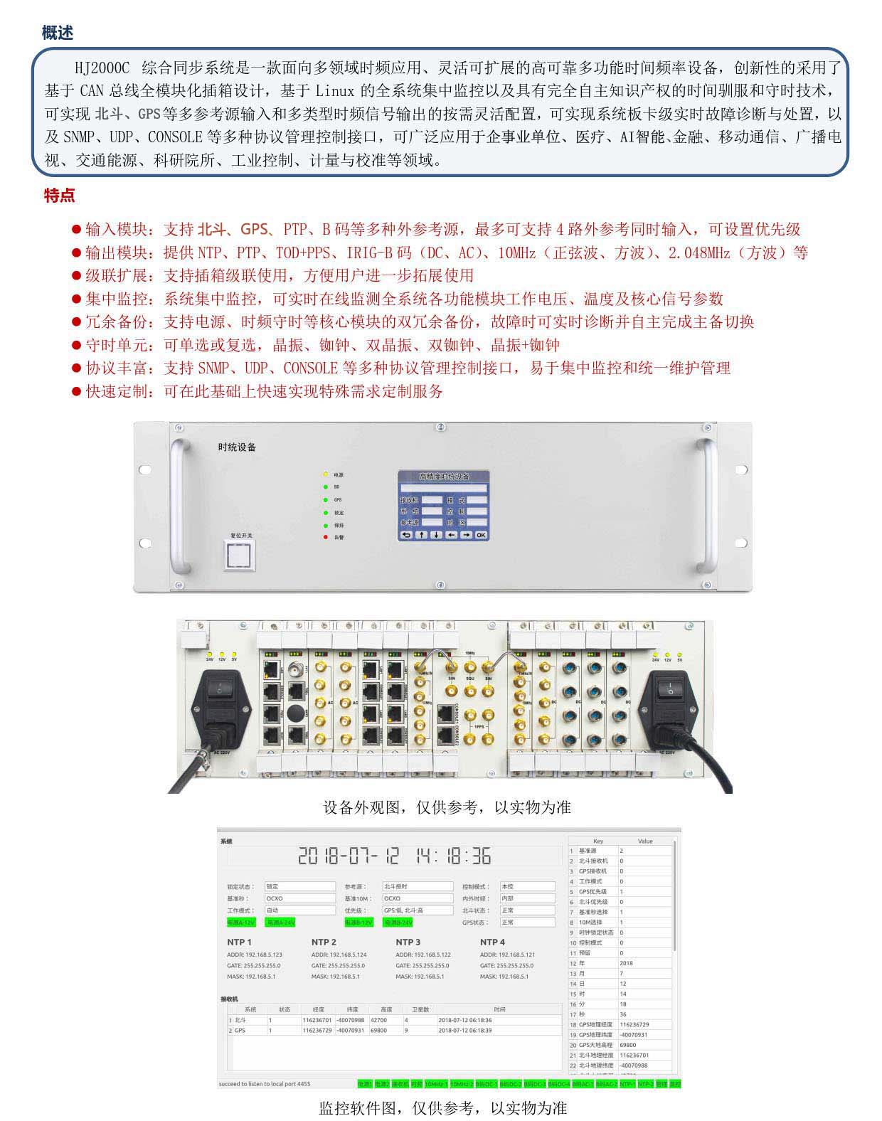 HJ2000C 綜合同步系統是一款面向多領域時頻應用、靈活可擴展的高可靠多功能時間頻率設備,創新性的采用了基于CAN總線全模塊化插箱設計,基于Linux的全系統集中監控以及具有完全自主知識產權的時...